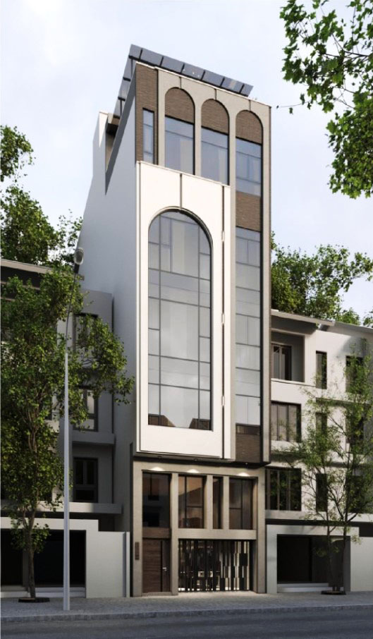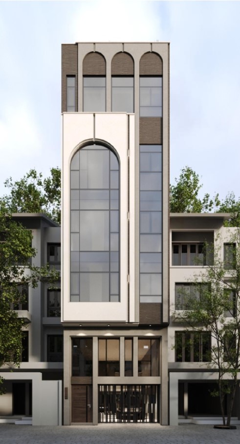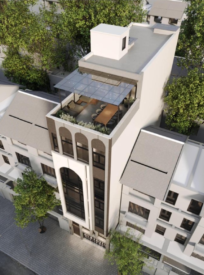 Phối cảnh nhà phố 5 tầng 1 lửng 1 tum, thiết kế bởi công ty Kiến trúc Arte’co